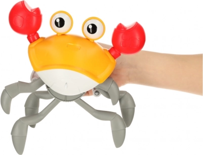 Wbudowane czujniki sprawiają, że krab po kontakcie z przeszkodą zmienia kierunek, a zabawa nie ustaje.