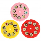 Wymienne dyski z obrazkami (zwierzęta, owoce, środki transportu) rzutują motyw na podkładkę, dziecko go odrysowuje i szybko nabiera pewności w rysowaniu.