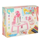 Zabawny różowy żyrafi stolik z projektorem wyświetla szablony na powierzchnię do rysowania, dzięki czemu dzieci mogą łatwo odrysowywać i kolorować. W zestawie znajdują się 3 wymienne dyski z motywami, 12 kolorowych flamastrów, książeczka do rysowania oraz zmazywalna podkładka. Świetny do rozwijania motoryki małej i kreatywności u dzieci od 3 lat.