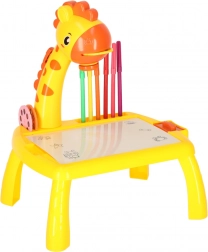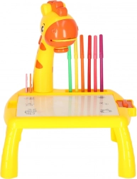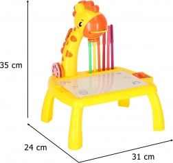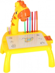 Odkryj zabawny sposób, by nauczyć dzieci rysować! Żółty projektor w kształcie żyrafy wyświetla obrazki na papierze, aby dzieci mogły je odrysować. W zestawie znajdują się kolorowe flamastry, trzy wymienne krążki z motywami oraz zmazywalna podkładka. Świetna pomoc w rozwijaniu kreatywności, motoryki małej i precyzji – idealna dla dzieci od 3 lat.