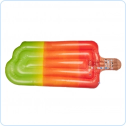 Stylowy dmuchany materac w kształcie loda na patyku przyciąga wzrok żywymi kolorami. Jest idealny do relaksu na tafli basenu i zapewnia wygodę także wyższym osobom dzięki hojnym wymiarom 185 × 89 cm. Po spuszczeniu powietrza łatwo go przenosić i mieści się w torbie na każdy wyjazd.