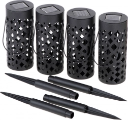 Nadaj swojej ogrodowej przestrzeni magiczny klimat dzięki zestawowi 4 solarnych lampionów LED. Bez kabli, automatyczne włączanie po zmroku dzięki czujnikowi, oszczędna praca oraz dekoracyjne świetlne wzory gwiazd i księżyca zamienią ścieżki, rabaty i taras w przytulne miejsce.