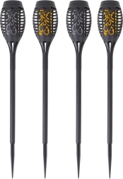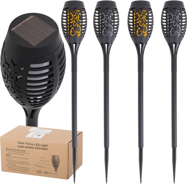 Stwórz w ogrodzie magiczną atmosferę dzięki zestawowi czterech solarnych lamp pochodniowych. Każda lampa ma 12 diod LED, które tworzą efekt migoczącego płomienia i automatycznie włączają się po zmroku. Zasilanie solarne bez kabli, łatwy montaż w ziemi oraz ciepłe, dekoracyjne światło do ścieżek, rabat i altan.