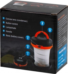 Zintegrowany uchwyt ułatwia zawieszenie lampy w różnych miejscach, co maksymalizuje jej użyteczność podczas kempingu czy spacerów w przyrodzie. Lampa jest zasilana trzema bateriami AA (nie są częścią zestawu), co jest świetne przy braku elektrycznych źródeł. Jest wykonana z wysokiej jakości plastiku ABS, co gwarantuje trwałość i długą żywotność.