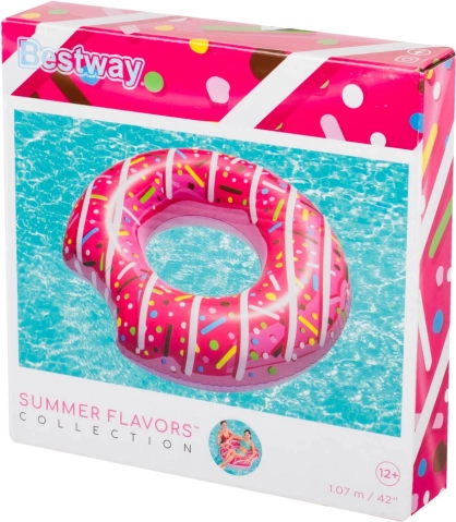 Zabawny nadmuchiwany krąg w kształcie donuta od BESTWAY przynosi lato pełne relaksu i zabawy. Dzięki średnicy 107 cm świetnie podtrzymuje zarówno podczas leniwego dryfowania na wodzie, jak i przy pierwszych pewniejszych próbach pływania. Stylowy różowy design z posypką jest nie do przeoczenia i wygląda świetnie na zdjęciach.
