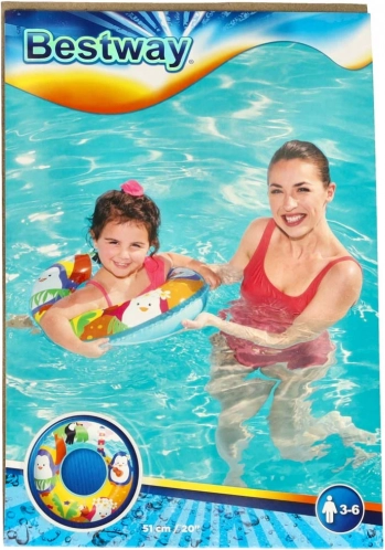 Lekkie i łatwe do przenoszenia dmuchane koło o średnicy 51 cm jest idealne do pierwszych wodnych zabaw. Dzięki atrakcyjnej grafice z pingwinami zachęca dzieci do aktywności w wodzie i jednocześnie wspiera ich pewność siebie podczas nauki pływania.