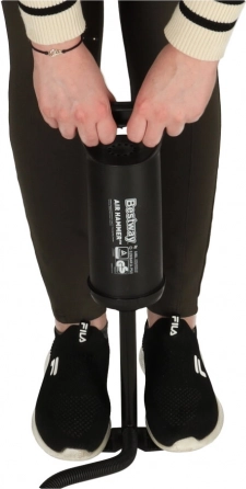 Elastyczny wąż z trzema różnymi końcówkami pozwala dopasować się do zaworów różnych producentów urządzeń dmuchanych. Mechanizm pompowania powietrza w obu kierunkach – z dołu do góry i z góry w dół – zapewnia szybkie i efektywne napełnianie. Podstawa pompki z uchwytami na stopy została zaprojektowana dla optymalnej stabilności podczas użytkowania.