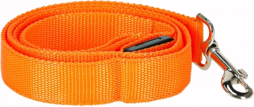 Bezpieczna i wygodna smycz na codzienne spacery. Zintegrowany pasek LED z 3 trybami świecenia zwiększa widoczność po zmroku, a wytrzymała tekstylna taśma 2,5 cm i metalowy karabińczyk zapewniają pewne przypięcie. Długość 120 cm, kolor pomarańczowy, zasilanie bateriami (w zestawie).