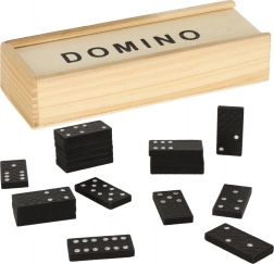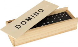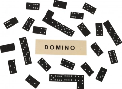 Czarne domino z białymi kropkami (0–6) zapewnia doskonałą czytelność i płynny przebieg gry dla dzieci i dorosłych.