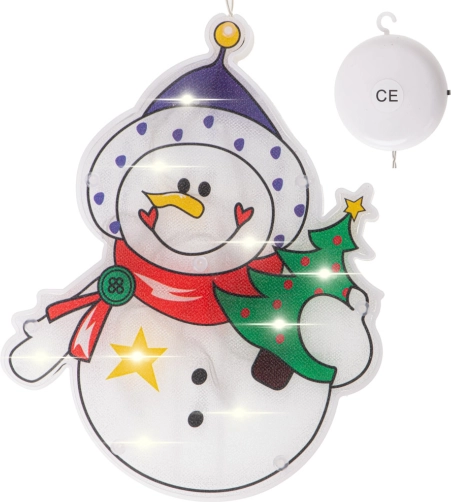 Zawieszana dekoracja LED na okno z przyssawką – Mikołaj z prezentami – Bałwan