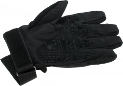 Solidny materiał przypominający mikrofibrę jest odporny na zużycie, a regulowane paski na nadgarstku utrzymują rękawice stabilnie na miejscu.