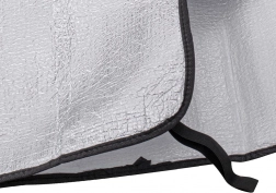 Ta praktyczna osłona ochronna na przednią lub tylną szybę skutecznie ogranicza nagrzewanie wnętrza latem, a zimą zapobiega osadzaniu się szronu i śniegu. Powierzchnia refleksyjna odbija promienie słoneczne, natomiast w chłodne dni warstwa termoizolacyjna działa jak bariera przeciw mrozowi.