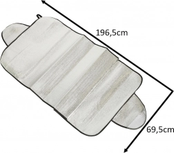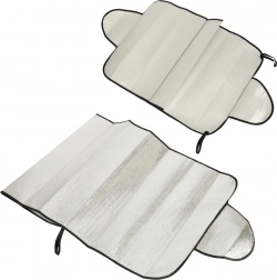 Uniwersalna osłona na przednią lub tylną szybę chroni samochód przed słońcem, promieniowaniem UV, szronem i śniegiem. Łatwy montaż poprzez przytrzaśnięcie bocznych krawędzi drzwiami, jest lekka, składana i wykonana z wytrzymałego nieprzepuszczalnego materiału z warstwą termoizolacyjną.