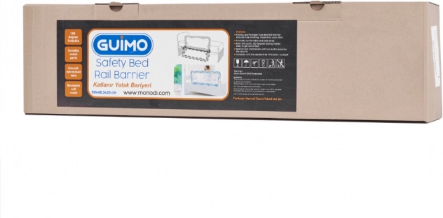 Montaż barierki jest niezwykle łatwy! Zacznij od jej złożenia, umieszczając odpowiednie elementy stelaża w otworach materiałowego, siatkowego obwodu. Następnie wystarczy unieść materac łóżka i wsunąć pod niego wystające podstawy barierki!
