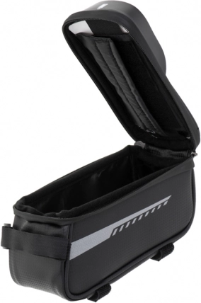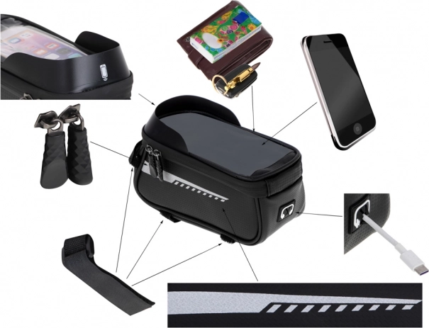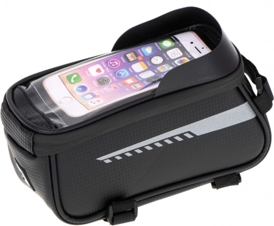 Ta wodoodporna torba rowerowa to doskonały dodatek dla każdego kolarza, który szuka funkcjonalnego i trwałego rozwiązania na długie przejażdżki. Wyposażona w specjalne miejsce na telefon, dzięki któremu można łatwo używać jako nawigacji lub odtwarzacza muzyki podczas jazdy. Uchwyt został zaprojektowany tak, aby telefon pozostał widoczny i dostępny przez przezroczyste i wodoodporne okienko.