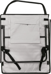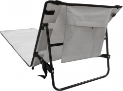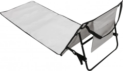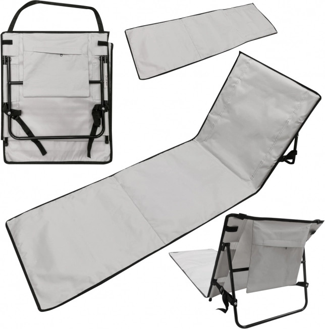 To leżak ma wytrzymałą metalową konstrukcję i wodoodporny materiał, dzięki czemu przetrwa różne sezony. Jest wyposażony w praktyczną torbę przymocowaną do oparcia, gdzie możesz schować telefon lub klucze. Złożony nie zajmuje wiele miejsca, a dzięki uchwytowi przenoszenie to zabawa.