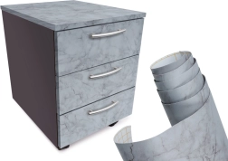 Ta samoprzylepna folia z realistycznym wzorem szarego marmuru szybko nada wnętrzu nowoczesny wygląd i pomoże zamaskować rysy, przetarcia czy przebarwienia. Idealna na ściany, parapety, szafki, komody oraz inne płaskie i równe powierzchnie w domu lub biurze.