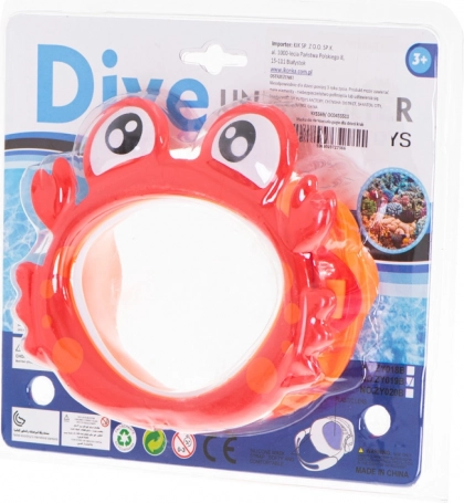 Ta urocza maska z motywem kraba zamieni każdą kąpiel w świetną zabawę. Dzięki połączeniu miękkiego silikonu i wytrzymałego plastiku dobrze przylega do twarzy, chroni przed chlapiącą wodą i wspiera pewność siebie małych pływaków. Nadaje się do basenu, nad morze i na letnie wakacje.