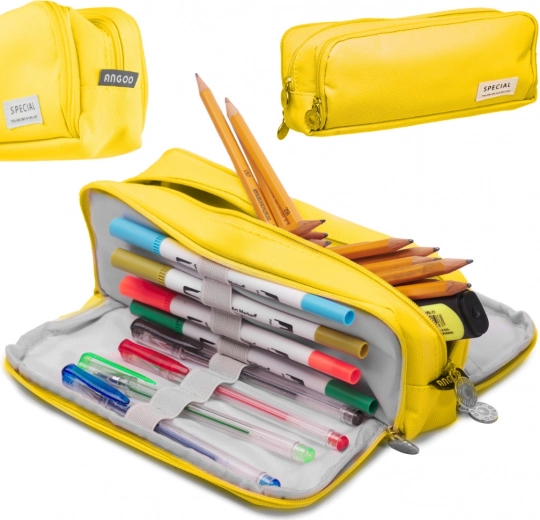 Szkolne piórnik trzykomorowy 3w1 – żółty