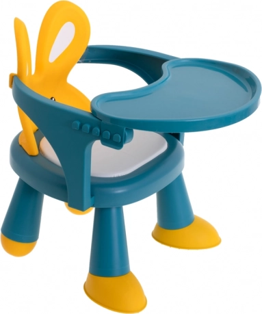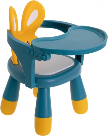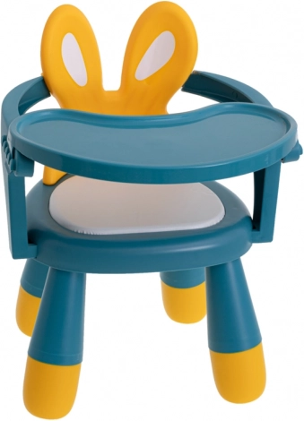 Kolorowe wykończenie i oparcie z króliczymi uszkami wspierają prawidłową postawę i sprawiają, że każdy posiłek i zabawa to przyjemność.