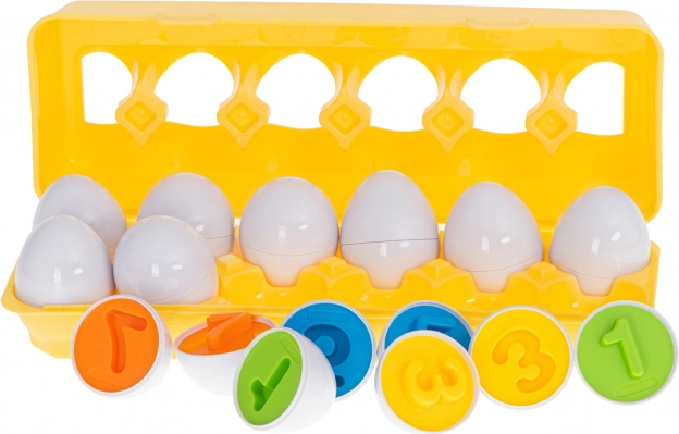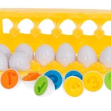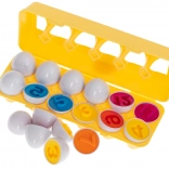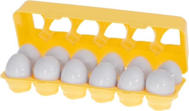Ten zestaw zawiera 12 jajek, które przygotowują dzieci do rozpoznawania kształtów i kolorów.