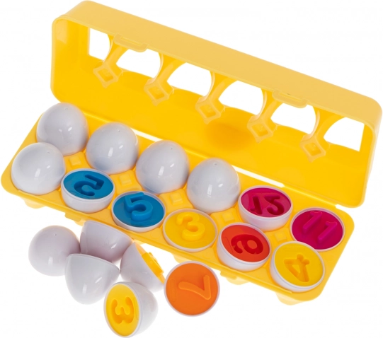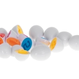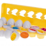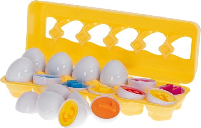 Każde jajko składa się z kolorowych części, które można dopasowywać, ucząc dzieci kolorów i kształtów w atrakcyjnej formie.