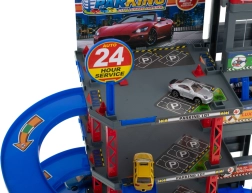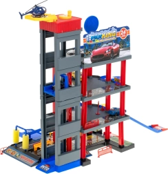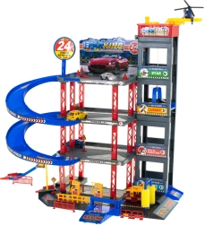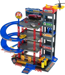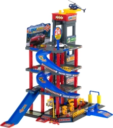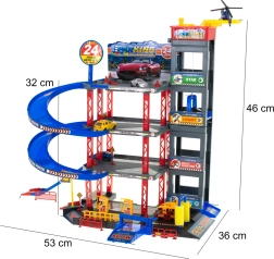 Wielopoziomowy garaż parkingowy jest wyposażony w wiele poziomów do parkowania i zabawy, co pozwala umieścić i przechowywać nie tylko samochodziki z zestawu, ale także inne pojazdy Twojego dziecka. Ręcznie sterowana winda zapewnia realistyczne wrażenia, a stacja benzynowa i myjnia dodają interaktywnych możliwości.