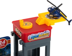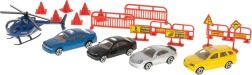 Znaki, barierki, rampy i naklejki dodają realizmu, a różne auta oraz helikopter ożywią każdą zabawę. Zestaw pomaga rozwijać małą motorykę oraz koordynację ręka–oko.