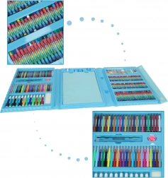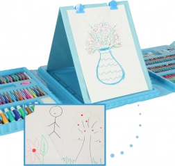 Odkryj kompletny zestaw plastyczny w praktycznym niebieskim kuferku z wbudowaną podstawką – idealny dla dzieci i początkujących artystów. Zawiera szeroki wybór akcesoriów: flamastry, kredki, świecowe kredki, pastele olejne, akwarele oraz dodatki. Wszystko jest przejrzyście uporządkowane w przegródkach, łatwe do przenoszenia i gotowe do tworzenia w domu, w szkole i w podróży.