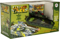 Czołg RC w kamuflażu zapewnia emocjonującą, dynamiczną zabawę w domu i w ogrodzie. Wieża obraca się płynnie, działo symuluje odrzut, a przy celnych trafieniach gasną kontrolki przeciwnika. Po trzech trafieniach czołg rywala jest na krótko wyłączony — bitwę można rozpocząć od nowa. Sterowanie 2.4 GHz gwarantuje stabilny zasięg i możliwość pojedynków wielu graczy bez zakłóceń.