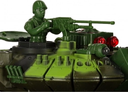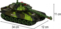 Model oferuje bogate efekty: przednie światła LED, efektowne podświetlenie wieży oraz autentyczne dźwięki silnika, strzałów z działa i karabinu maszynowego. Dzięki miękkim gumowym gąsienicom radzi sobie na różnych nawierzchniach i świetnie trzyma tor jazdy. Otwierany właz wieży pozwala posadzić dołączonego czołgistę z karabinem maszynowym. Zasilanie zapewnia akumulator do ładowania, więc eksploatacja jest ekonomiczna i wygodna.