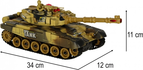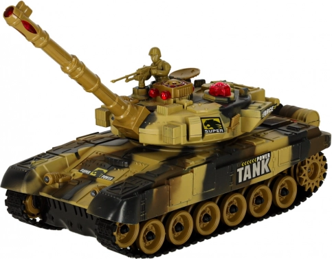Czołg RC w wersji pustynnej oferuje płynną jazdę do przodu/tyłu, obrót w miejscu oraz obrotową wieżę o 180° w każdą stronę (łącznie sektor ostrzału 360°). Miękkie gumowe gąsienice zapewniają dobrą przyczepność na różnych nawierzchniach. Przy strzale czołg symuluje realistyczny odrzut oraz towarzyszące dźwięki silnika i ognia.