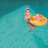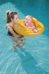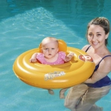 Nadmuchiwane dziecięce siedzisko do wody to doskonała pomoc dla rodziców, którzy chcą oswajać swoje dzieci z wodą od najmłodszych lat. Nadaje się do użycia nie tylko w basenach, ale także nad morzem czy jeziorem. Okrągły kształt zapewnia dobrą wyporność i stabilność, co pomaga dziecku utrzymać równowagę i bezpiecznie unosić się na powierzchni. Dla większego komfortu i bezpieczeństwa siedzisko ma wszyte „majteczki”, które podtrzymują dziecko i zapobiegają przewróceniu. Wesoła, żywa kolorystyka z motywem kraba przyciąga uwagę dziecka i zachęca do wodnych zabaw.