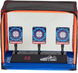 Elektroniczny cel do strzelania to świetna zabawka dla dzieci i dorosłych, którzy chcą trenować celność i koordynację ręka-oko. Po trafieniu cele się składają, po strąceniu wszystkich trzech automatycznie się podnoszą, a na wyświetlaczu LED doliczany jest punkt. Odpowiedni do piankowych strzałek i kulek.
