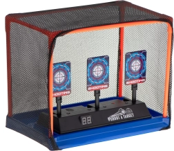 Popraw swoją celność i baw się godzinami z elektronicznym celem z trzema tarczami, automatycznym resetem, cyfrowym licznikiem punktów oraz efektami świetlnymi i dźwiękowymi. Bezpieczna siatkowa klatka zatrzymuje piankowe strzałki i ułatwia sprzątanie.