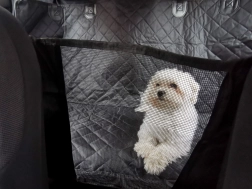 Zintegrowane siateczkowe okienko między przednimi siedzeniami poprawia wentylację i umożliwia psu widzieć opiekuna, nie rozpraszając kierowcy.