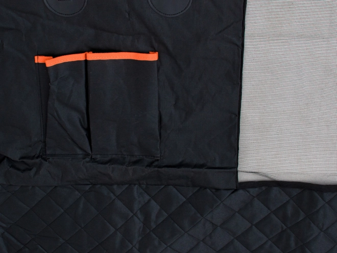 Z przodu znajduje się wstawka z siatki, która poprawia przepływ powietrza i pozwala psu widzieć Ciebie oraz drogę, bez prób przechodzenia na przednie siedzenia. Spód wykonany jest z antypoślizgowego materiału dla stabilności, nie brakuje otworów na pasy bezpieczeństwa oraz dwóch praktycznych kieszeni na smycz czy przysmaki. Dzięki wytrzymałym materiałom i metalowym kółkom pokrowiec można dodatkowo przymocować do uchwytów nad drzwiami dla większej pewności.