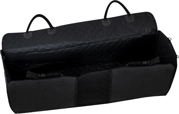 Praktyczny pokrowiec na tylne siedzenia chroni tapicerkę przed sierścią, błotem i wodą, a jednocześnie tworzy bezpieczny „kojec” dla Twojego pupila. Dzięki zamkom i bocznym klapkom, wodoodpornemu materiałowi, antypoślizgowej spodniej warstwie oraz siateczkowemu okienku do kontaktu i wentylacji, podróż z psem jest czysta, bezpieczna i wygodna.