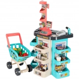 Dziecięcy supermarket z akcesoriami i wózkiem zakupowym, 47 elementów, miętowy