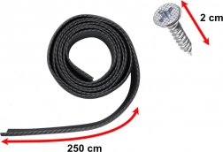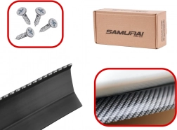 Ta uniwersalna listwa/spoiler wykonana jest z wysokiej jakości, elastycznej gumy odpornej na warunki pogodowe i drobne uszkodzenia mechaniczne. Karbonowy efekt 3D/5D podkreśla linie samochodu i optycznie obniża jego przód. Odpowiednia do większości zderzaków – można ją dowolnie skrócić według potrzeb.