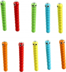 Magnetyczna pałeczka pomaga dzieciom ćwiczyć precyzyjny chwyt, koordynację ręka–oko oraz cierpliwość podczas łowienia i odkładania gąsienic.