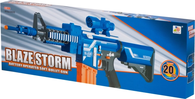 Blaster BLAZE STORM ucieszy początkujących i zapalonych graczy. Automatyczny mechanizm zasilany 5× AA potrafi oddać do 3 strzałek na sekundę, dzięki czemu w dynamicznej grze zawsze masz przewagę. Dzięki lekkiej konstrukcji, kolbie barkowej i przedniemu chwytowi blaster trzyma się pewnie i wygodnie.