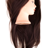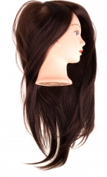 Profesjonalna głowa treningowa dla fryzjerów z długimi brązowymi włosami jest idealna do ćwiczenia strzyżeń, fryzur i technik stylizacji termicznej. Włosy są ułożone zgodnie z kierunkiem wzrostu, dzięki czemu łatwo się rozczesują, są gęste i umożliwiają precyzyjne wydzielanie pasm. Świetna pomoc dla początkujących i zaawansowanych oraz niezbędne wyposażenie na kursy, konkursy i pokazy.