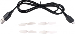 W zestawie znajdziesz dron X20P, pilot 2,4GHz, akumulator, ładowarkę USB do akumulatora oraz zapasowy zestaw śmigieł.