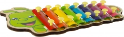 Ten kolorowy dziecięcy ksylofon to idealny pierwszy instrument. Osiem nastrojonych metalowych listew w tęczowych barwach pobudza naturalną ciekawość i w zabawny sposób rozwija słuch muzyczny oraz poczucie rytmu. Wystarczy lekko stuknąć pałeczką, a rozbrzmi czysty ton – siła uderzenia wpływa na głośność.