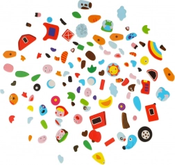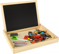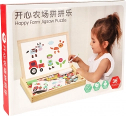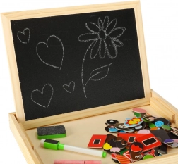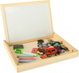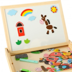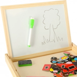 Dwustronna drewniana tablica z magnetycznymi puzzlami jest idealna do dziecięcej kreatywnej zabawy. Tablica wykonana jest z wysokiej jakości naturalnego drewna i obejmuje różne elementy wspierające naukę i zabawę.
