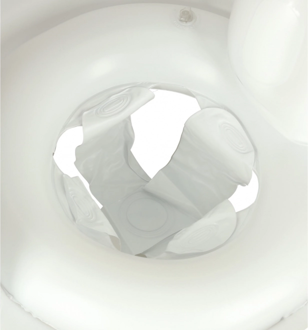 Nadmuchiwane koło jest wyposażone w wygodne siedzenie i otwory na nogi, co zapewnia stabilność i bezpieczeństwo.