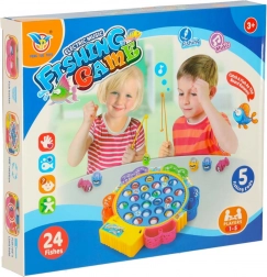 Zabawna rodzinna gra dla 1–5 graczy, w której łowicie rybki na obracającym się stawie. Silnik napędza wirującą platformę, rybki otwierają i zamykają pyszczki, a gra odtwarza melodię. W zestawie znajduje się 24 rybki, 5 wędek oraz kolorowa baza z koszyczkami. Świetnie rozwija refleks, koordynację ręka–oko i koncentrację.