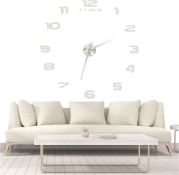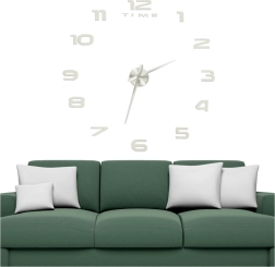 Dobierz średnicę zegara do przestrzeni. Dzięki elementom samoprzylepnym stworzysz kompozycję idealnie dopasowaną do Twojej ściany.