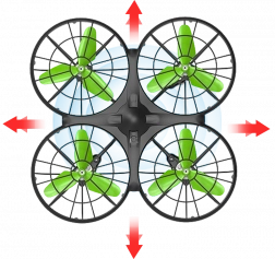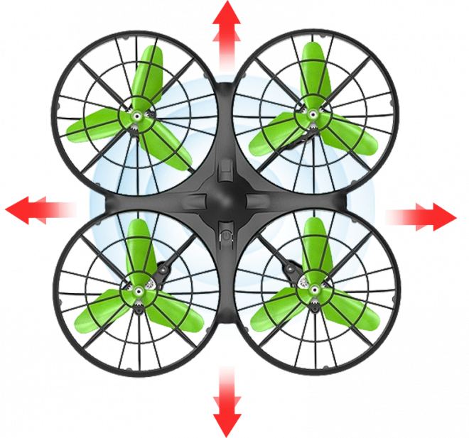 Osłony wirników zapewniają bezpieczeństwo w locie i chronią śmigła przed uszkodzeniami.